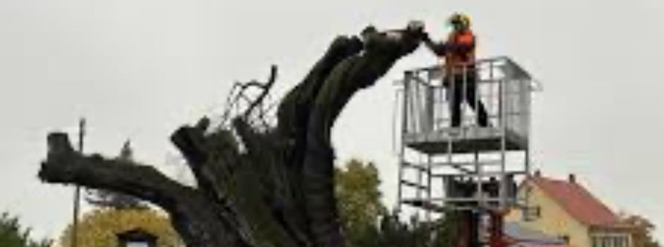 Damit der junge Baum gut heranwachsen kann, wird es notwendig sein, den Torso des alten Baums zu kürzen und zu stabilisieren. Im Anschluss erhält er eine schützende Schicht, die ihm die besten Bedingungen zum Wachsen bietet.